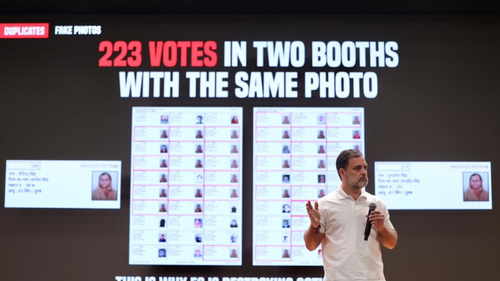 Rahul Gandhi ने कहा कि कांग्रेस ने 2024 का हरियाणा विधानसभा चुनाव जीता था, जबकि उसी साल हुए महाराष्ट्र विधानसभा चुनाव “निष्पक्ष नहीं” थे। उन्होंने बताया कि पार्टी ने इस बारे में Election Commission of India से शिकायत की, लेकिन कोई जवाब नहीं मिला। उन्होंने आरोप लगाया कि BJP सभी भारतीयों को बराबर नहीं मानती और दलितों व उच्च जाति के नागरिकों को समान दृष्टि से नहीं देखती।